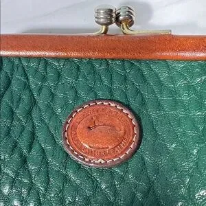 🦆 DOONEY & BOURKE LEATHER KISSLOCK COIN POUCH IN FOREST GREEN WITH TAN TRIM