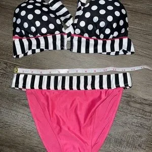 NWT 2 pc black & pink polka dot Halter neck bikini set Size L junior