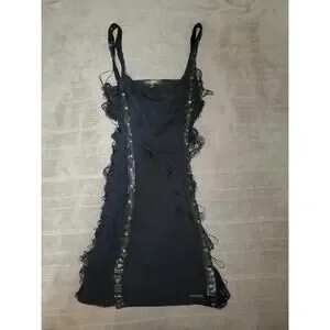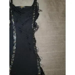 Vintage Rocawear Black Distressed Fringe Mini Dress