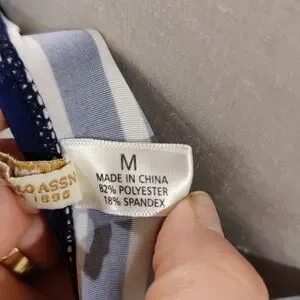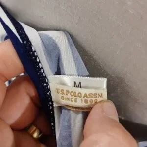Us Polo Navy & White Striped Halter Tankini Swim Top Yellow Trim Sz m