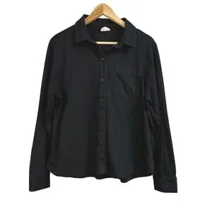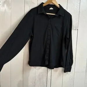Pact Black Long Sleeve Button Up Shirt 100% Organic Cotton Women's Size L