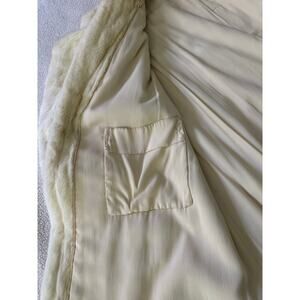 Owner maintained this gem in perfect conditions. One large pearl toned button front closure with an interior pocket on each side and full sleeves.