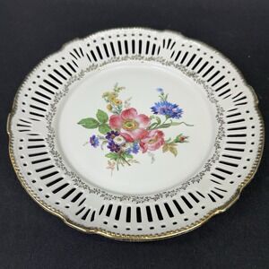 Schwarzenhammer Porcelain Reticulated Plate With Floral Design, Vintage Mid 20th