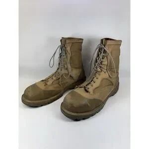 Pre-owned military surplus condition with visible cosmetic wear including scuffs, discoloration, and surface abrasion from field use. Uppers remain structurally sound. Soles show wear but still have solid tread remaining. No holes or structural damage. Please review photos for exact condition.