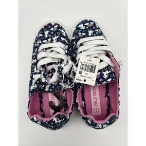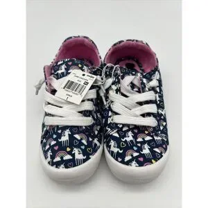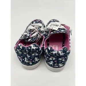 Introducing the Falls Creek Jump Unicorn shoes in pink, blue, and white with a rainbow design, perfect for any skater girl out there! These slip-on flats are designed for girls with a US shoe size of 1.