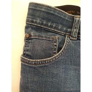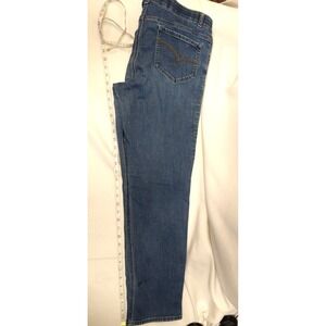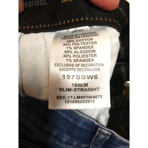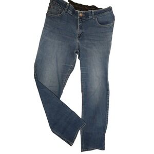 The product is a pair of women's Lee Riders jeans in size 16W, featuring a slim fit and straight leg style. Made by the brand Lee, these jeans are designed for a flattering and comfortable look. The medium wash gives them a classic blue color, while the slimming features enhance the overall style. With a 36-inch waist size, these jeans are perfect for women looking for a stylish and versatile addition to their wardrobe.