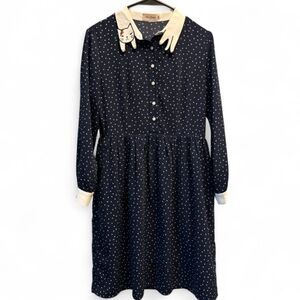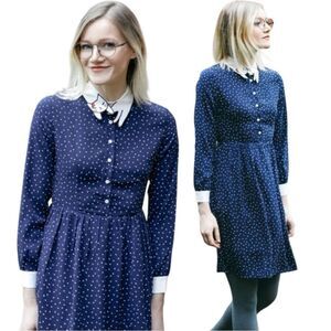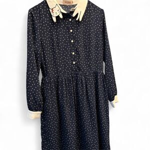 Miss Patina Bowie Cat Dress Navy Polka Dots