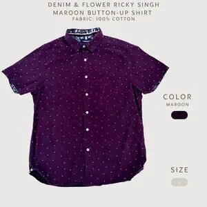 Denim & Flower Ricky Singh Button Shirt Maroon L