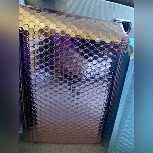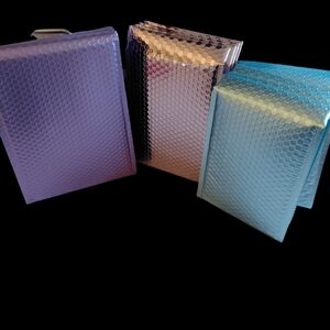 Set of iridescent metallic bubble mailers in Purple, Rose Gold, and Ice Blue. Durable padded design protects tablets and accessories during shipping. A must-have to staple your closet. From a non-smoking and pet-free home.