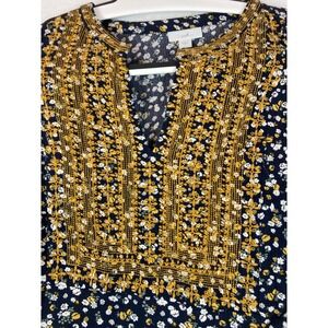 J. Jill Women's Embroidered Floral Print Tunic Dress Long Sleeve Boho Size L