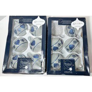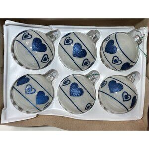 Glass ornaments with blue & white heart pattern. Gorgeous set!