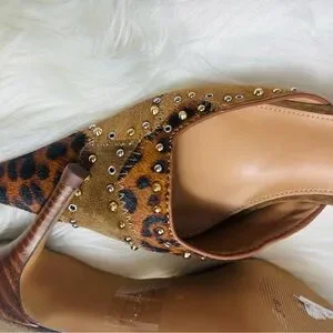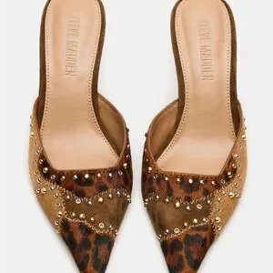 Steve Madden Leopard Print & Tan Studded Pointed Mule Heels