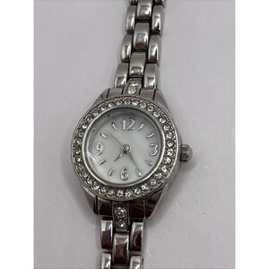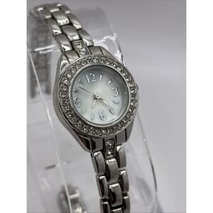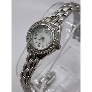 Women's Mother of Pearl Dial Quartz Watch Crystal Bezel 7.5" Band- New Battery