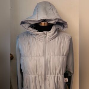 Womens Avia SkyBlue Quilted Jogger Athletic Light weight Coat Jacket Hooded