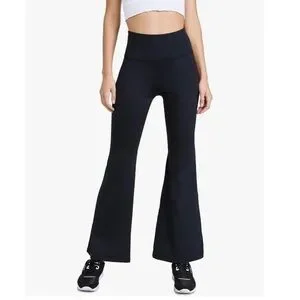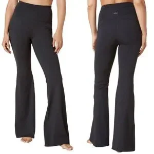 Beyond Yoga Women's Heather Rib All Day Flare Pants in Black Size L