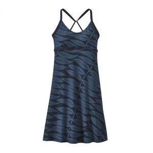 Patagonia Sundown Sally Strappy Blue Racerback Leaf Print Stretchy Athletic Dress Size XL