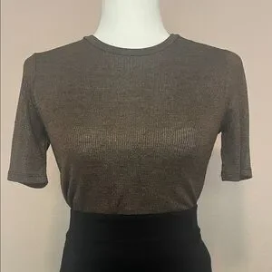 Chic metallic brown top. Short sleeves. Perfect for casual wear.