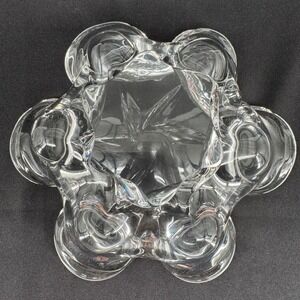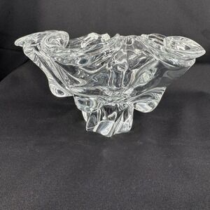 Murano Clear Art Glass Hand Blown Bowl Decorative Candy Dish Ruffled Edge Heavy
