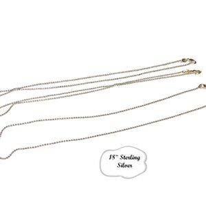 Beautiful delicate silver chain. These are very shiny and strong for their size. The will be perfect for your everyday wardrobe. Put a pendant, wear it as is, or create something amazing with it. There is a spring clasp and tag so all you have to do is put on the pendant. Chain Length Size Option: 18"