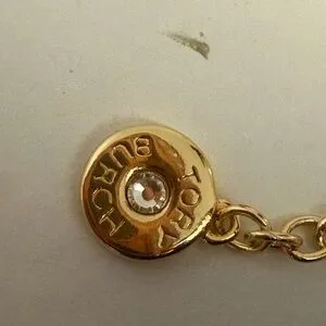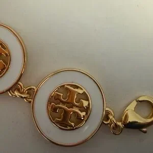 Authentic Tory Burch 18 Gold Plated White and Gold Enamel Logo Link Bracelet New