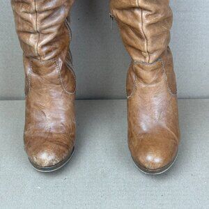 Jessica Simpson Cognac Leather Platform Slouch Boots Size 6.5B AS-IS/REPAIR