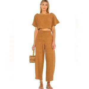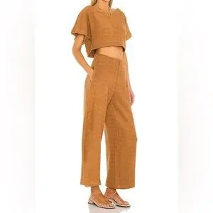 Free People X REVOLVE Changing Tides Set Top & Wide Leg Pants Color Savannah L