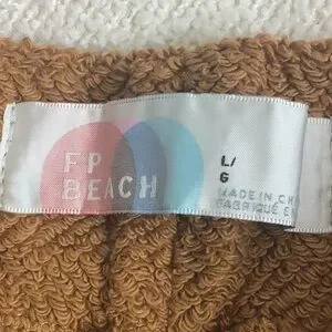 100% cotton. Made in China. Machine wash cold. Back button closure. Elasticized waistband. Textured fabric. Item sold as a set. 20" at the knee breaks to 23" at the leg opening. Revolve Style No. FREE-WC148. Manufacturer