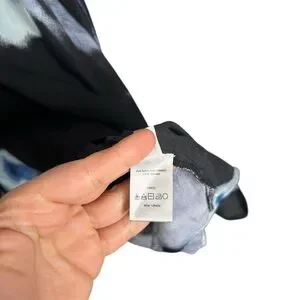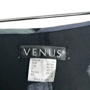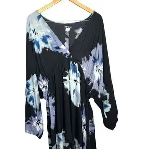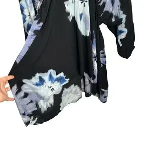 Venus Black Floral V-Neck Boho Slouchy Caftan Hi-Low Mini Dress Size Large