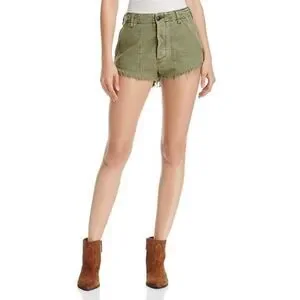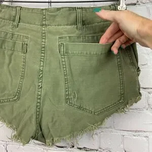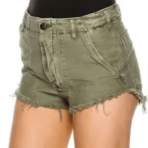 Free People Raw and Patched Standoff Short Cotton Soft Natural Mossy