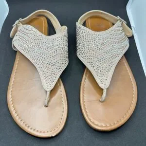 Faded Glory Women's Thong Sandals Beige Rhinestone Embellished Casual Size 9