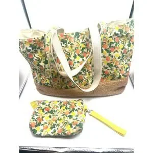 Martha Stuarts The Perfect Tote Citrus Floral Yellow Orange Matching Wrist Purse