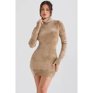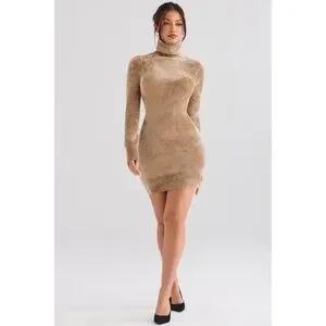 NEW House of CB Taya Chenille Mini Dress Musk Large