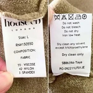 - 55% viscose 42% nylon 3% spandex. Dry clean