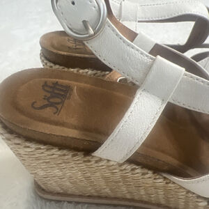 NWT Sofft Women's Devyn Sz 9.5 Wedge Sandals White Leather Open Toe Ankle Strap