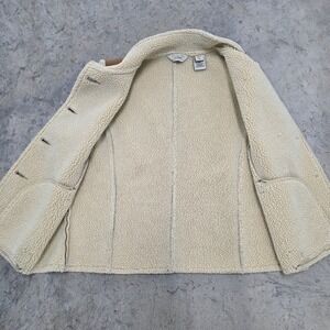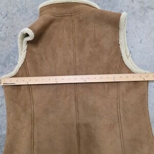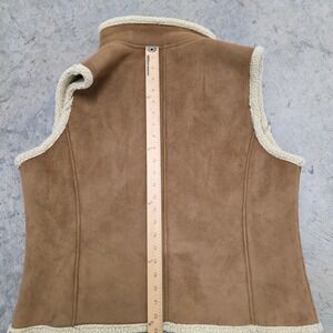 Vintage LL Bean Womens L Tan Suede Sherpa Lined Vest Snap Front Collar Classic