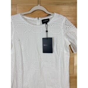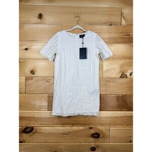 The Kooples Paris White Eyelet Shift Dress Short sleeve Lined NWT Sz 2