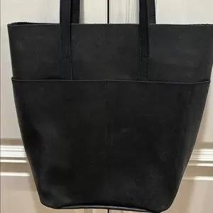 ABLE Classic Black Leather Tote Bag