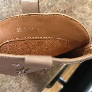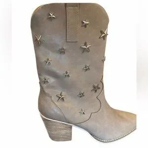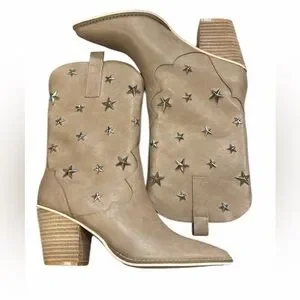 Ccocci Star Studded Western Booties Size 7 Taupe Pull On Pointed Toe Block Heel