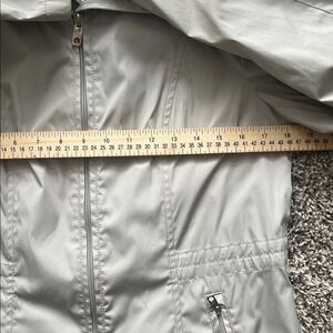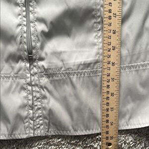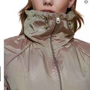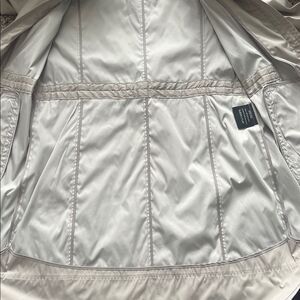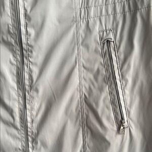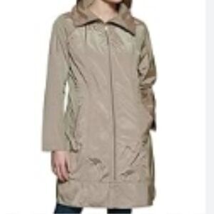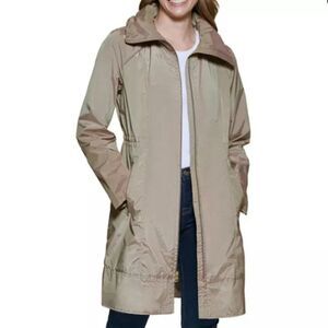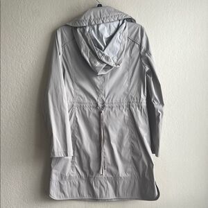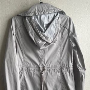 Like New! Cole Haan Light Gray Hooded Packable Rain Jacket Pockets Cinch Waist S
