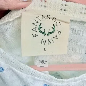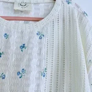 Size Large oversized boxy fit, not cropped, pretty blue floral, lace details