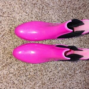 Brighten rainy days with these vibrant pink Seven brand ankle rain boots, size 8. Featuring a sleek Chelsea silhouette with black elastic side panels, glossy waterproof finish, and pull tabs for easy wear. Brand new condition with fresh comfort insoles included. Stylish, functional, and perfect for festivals, errands, or everyday chic. Ships fast from Tulsa boutique studio!