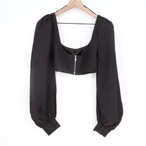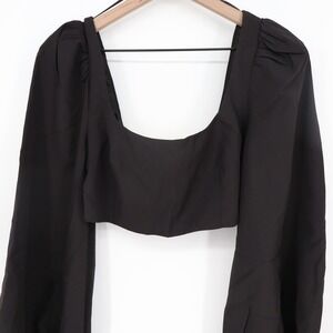 Naked Wardrobe Womens Black Puff Sleeve Square Neck Crop Top Size M