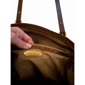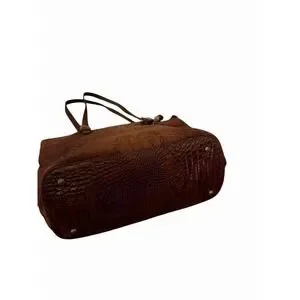 Brahmin Brown Embossed Crocodile Tote Bag with Logo Charm