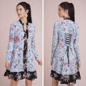 NWT Anthropologie Sz 2 Maeve Leyster Shirt Dress Floral Long Sleeved Midi