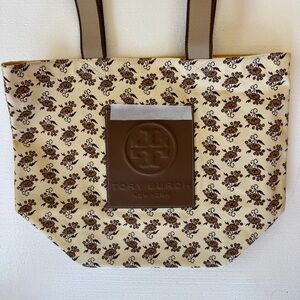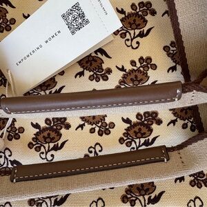 Our lightweight carryall goes everywhere. Updated in the season's prints, it has a practical flat base and comfortable webbing straps reinforced with leather.