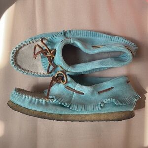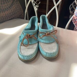 Eastland Casio Fringe Moccasin Booties Blue 7.5