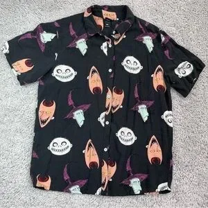 Hot Topic Top Mens Medium Nightmare Before Christmas Tim Burton Button Up Oogie