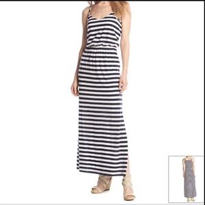 (Sizes S, L, XL) Navy & White Striped Maxi Dress