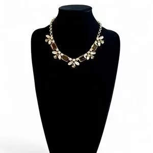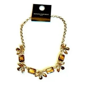 This BANANA REPUBLIC statement necklace features faceted brown translucent crystals with delicate shimmer accents—elevated, earthy glam at its finest.