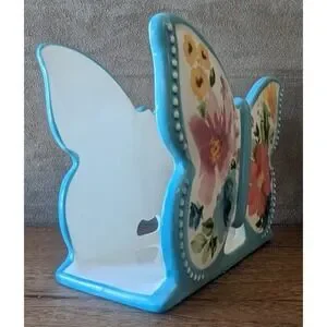 Pioneer Woman Breezy Blossom Butterfly Ceramic Napkin Holder, Teal / Floral